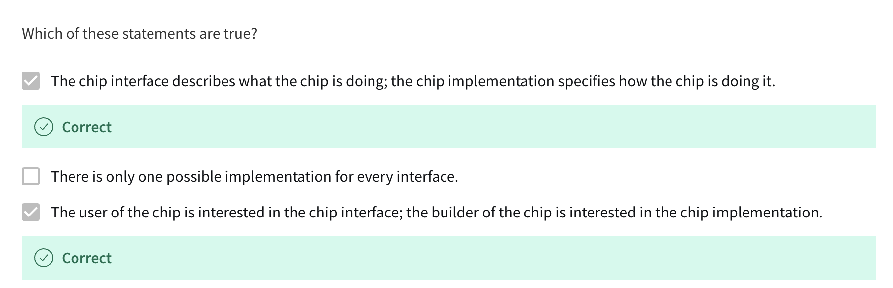 - describe only the chip's interface: contract that we actually have to implement