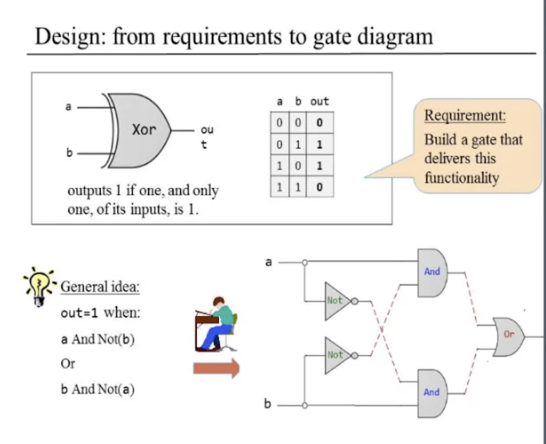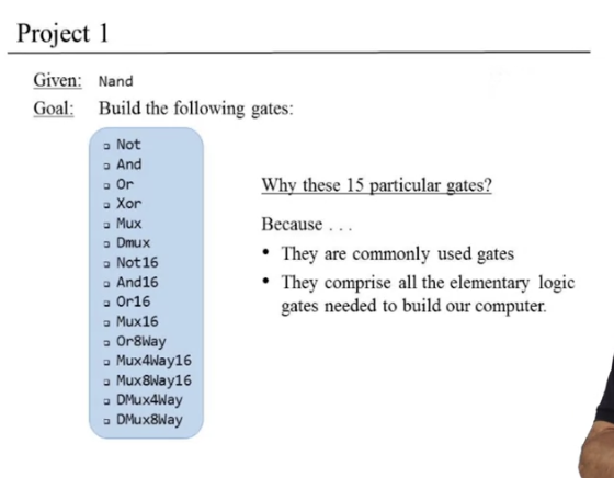 Nand Gate로 시작해서, going to piece them together in some clever ways in order to generate and produce the required functionality.
