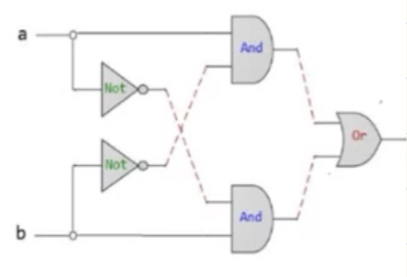 * if ((a and Not(b)) or (Not(a) and b)) out = 1, else out = 0
