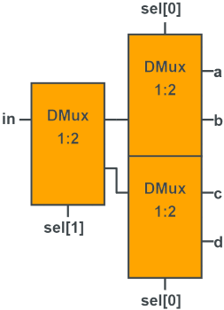 DMux(in=in, sel=sel[1], a=dIn0, b=dIn1);