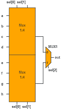 Mux16(a=muxAD, b=muxEH, sel=sel[2], out=out);