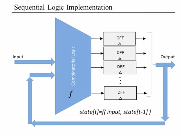 and the sequential logic which we don't want to thinking about how it is constructed from lower levels combinatorial stuff.
