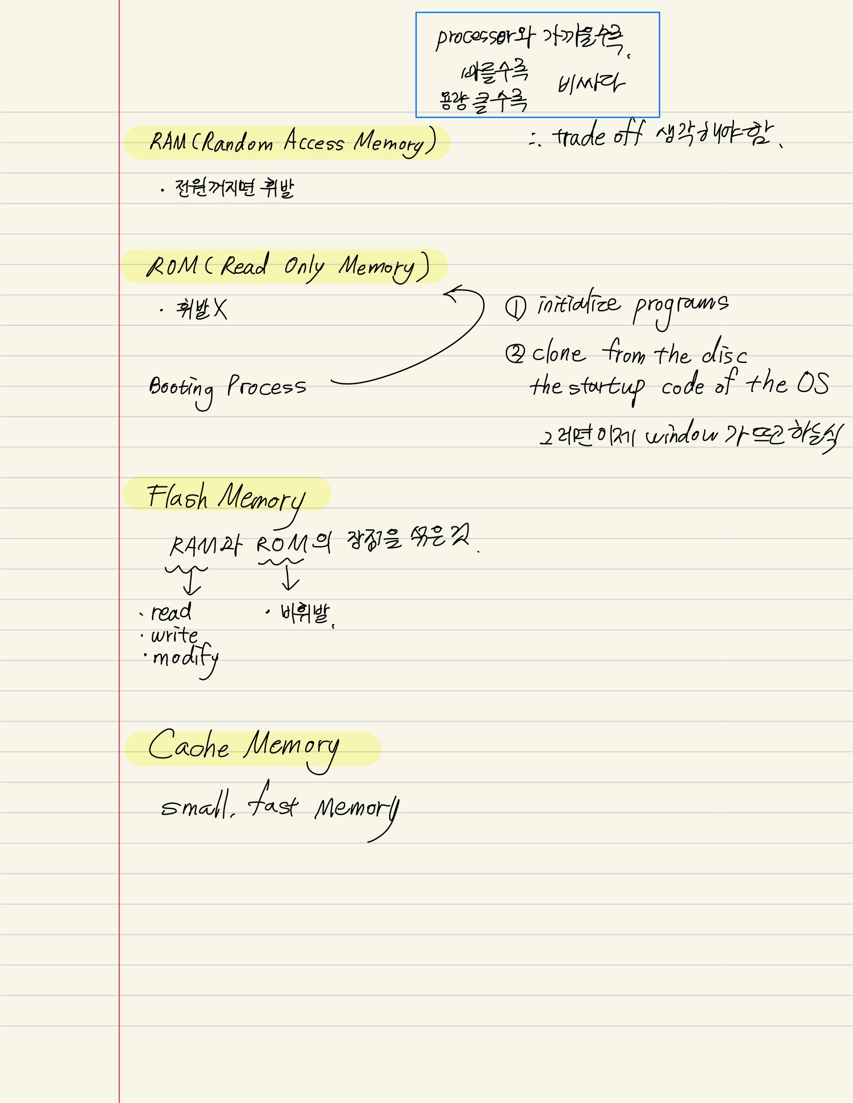 컴퓨터 구조에서의 memory in mother board는 many different meaning