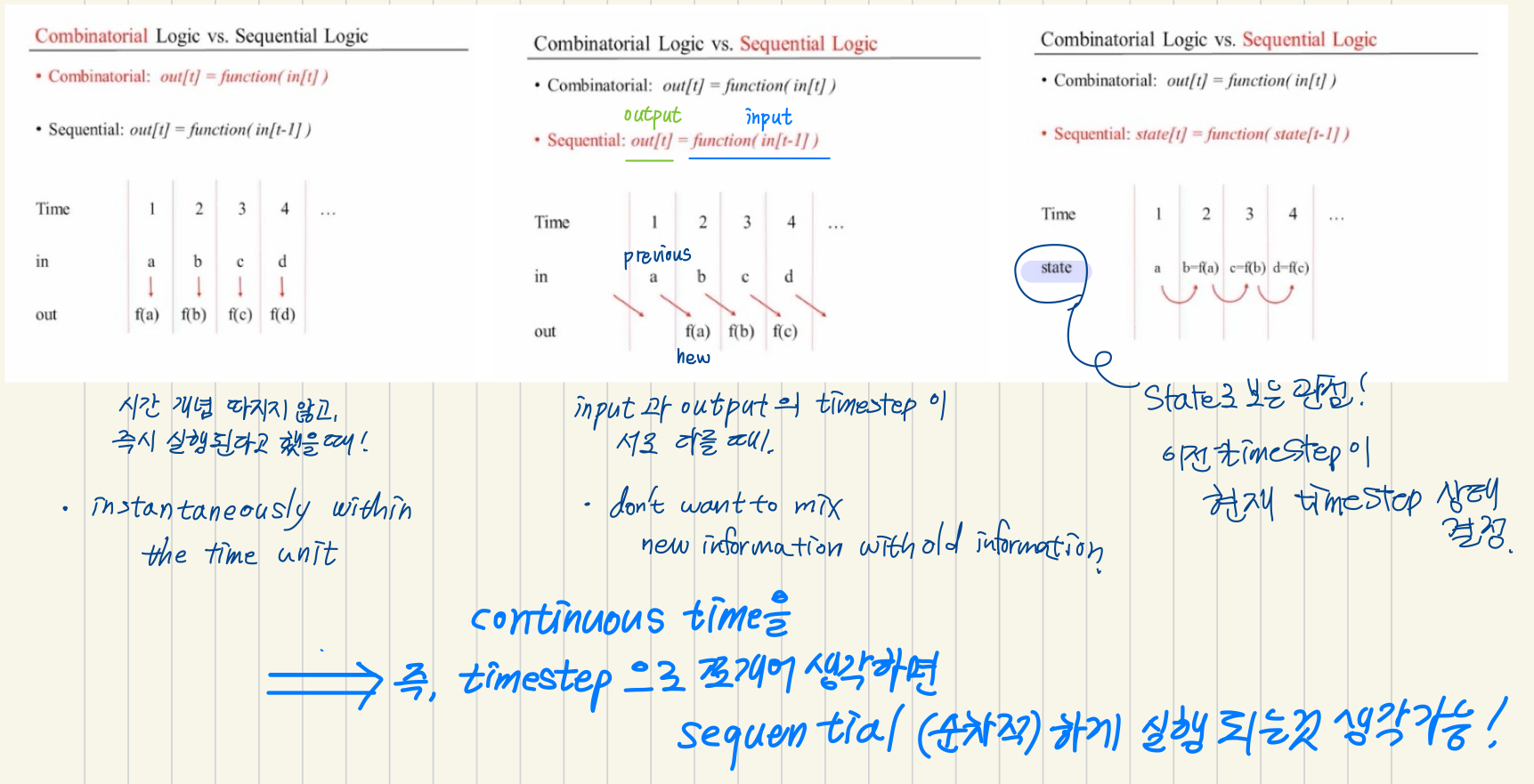 예) NOT GATE 의 input 과 output은 다른 time unit
