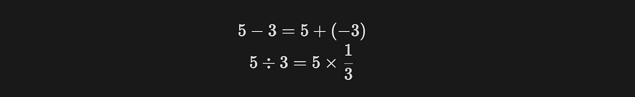 - 곱셈의 역원(역수, Reciprocal): a ⋅ 1/a = 1, a ≠ 0