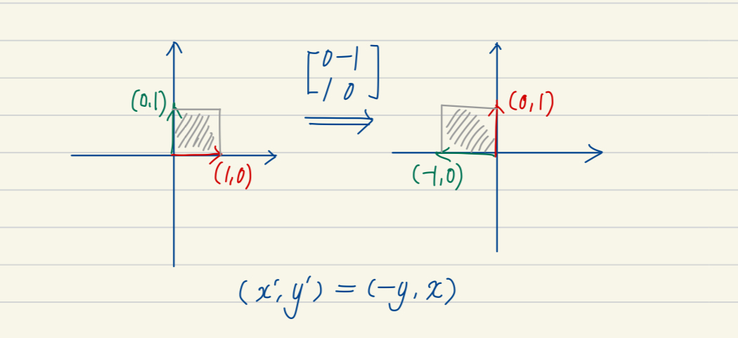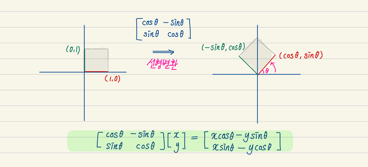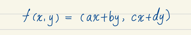즉 (x,y)를 새로운 공간의 좌표(ax + by, cx + dy)에 대응시켜주는 것