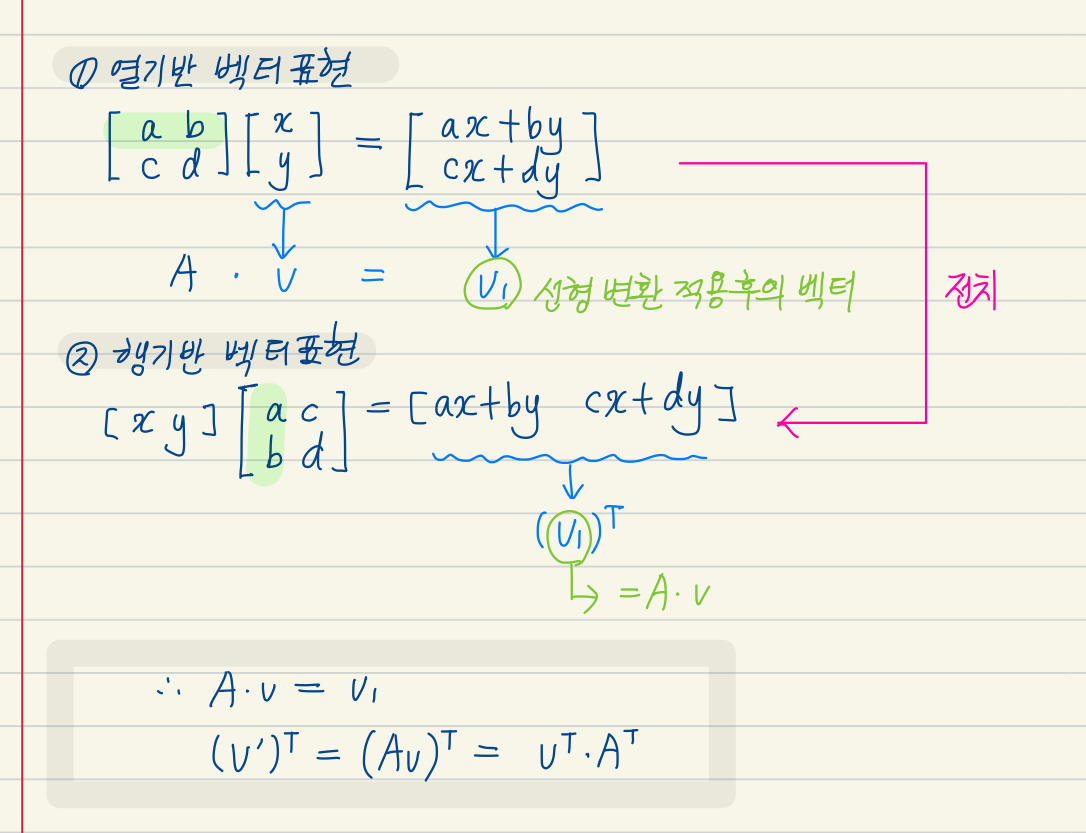- 열벡터는 벡터 공간의 벡터를 의미한다.