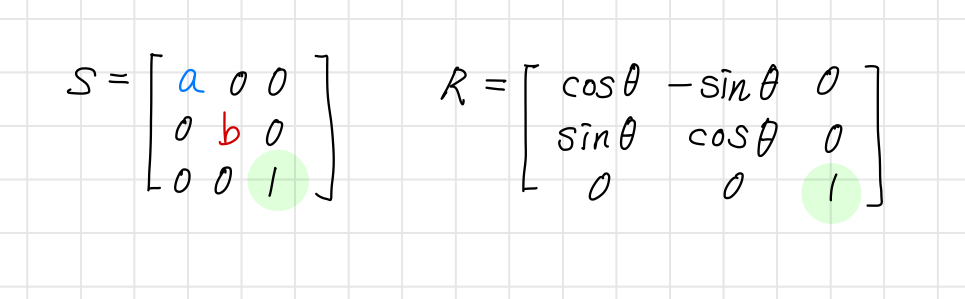 마지막 차원의 z축은 아무것도 변하지 않게 1으로 고정.