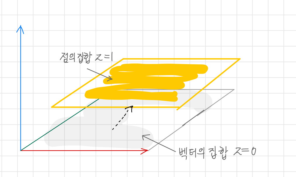 점은 마지막 차원 값이 1인 특별한 유형을 가진 벡터를 의미한다.