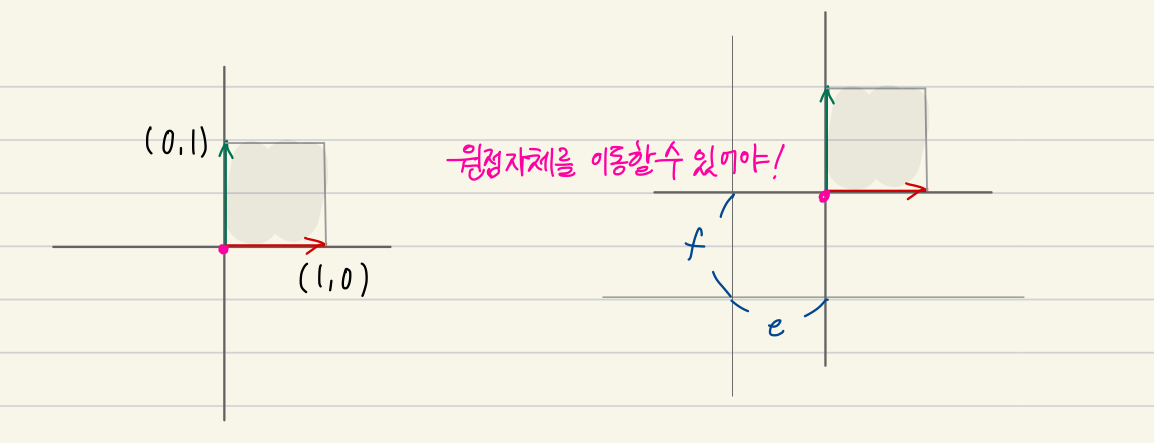 왜냐면 원점에서부터 시작하는 벡터의 특성상 기저벡터를 원점으로부터 분리해 이동시킬 수 없기 때문