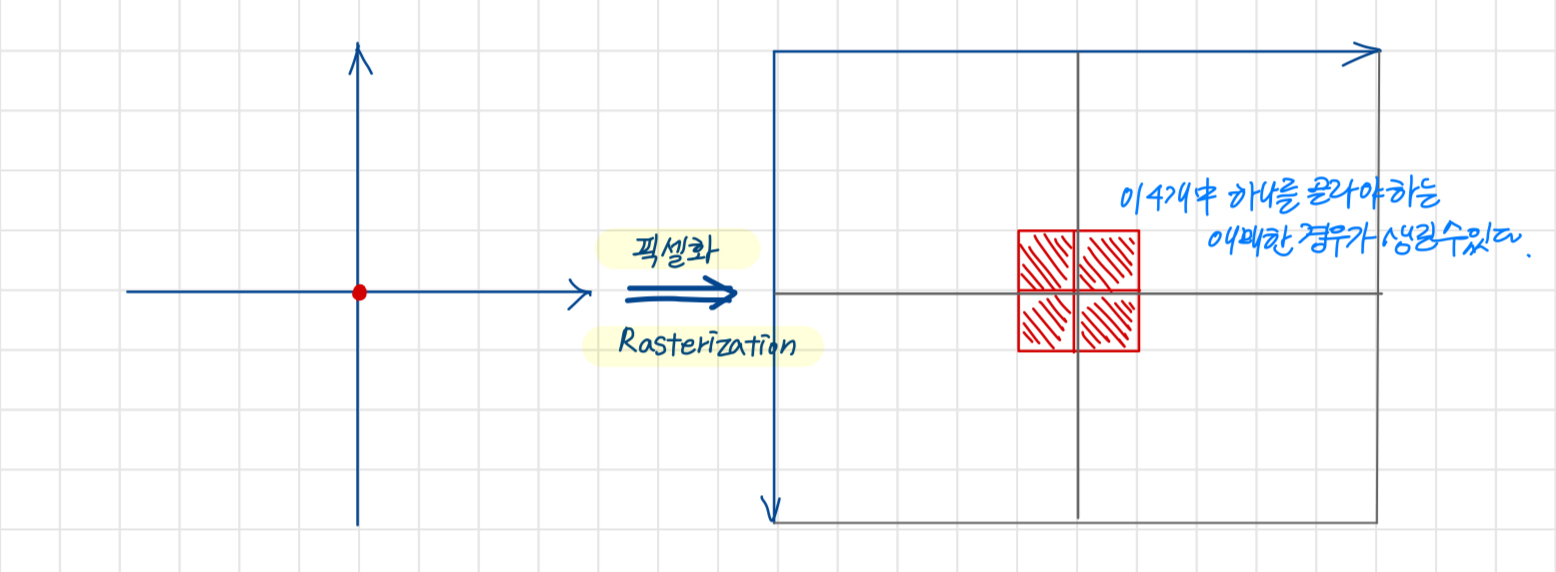 4개 중 하나를 선택하는 수식을 만들어야 함. → Rasterization Rule