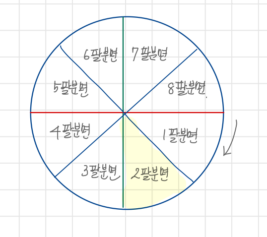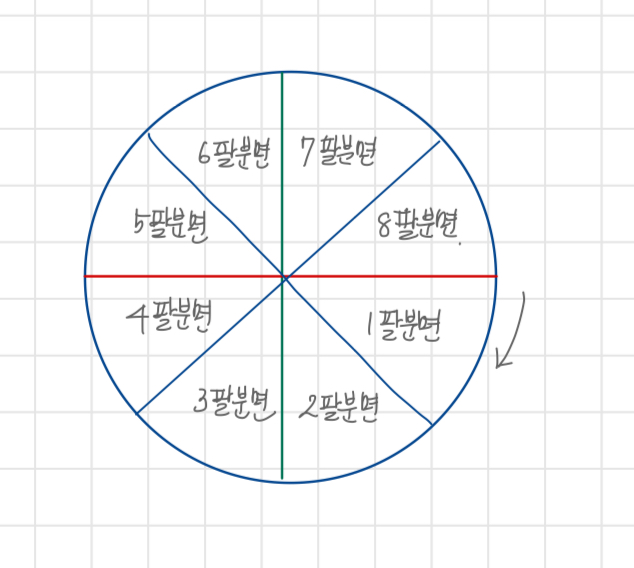 4팔분면은 1팔분면에서 x방향이 반대로 진행되는 것 외에는 동일하다.