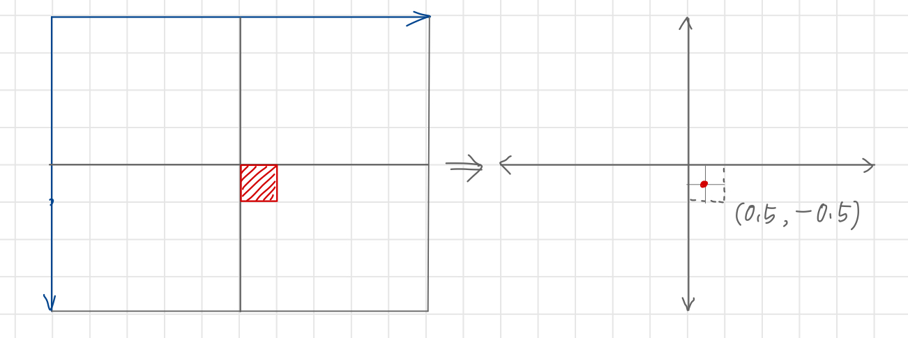 픽셀을 벡터로 변환할 때에는 (픽셀을 데카르트 좌표계로 변환할 때는)