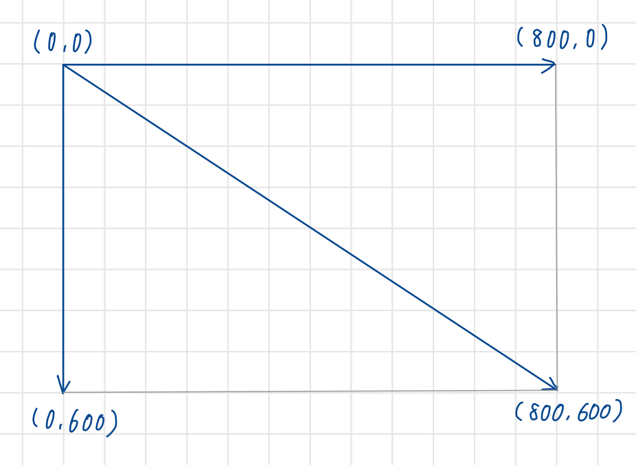 화면은 픽셀들로 구성되어 있으며 다음과 같은 좌표계를 사용하여 픽셀의 위치를 관리한다.