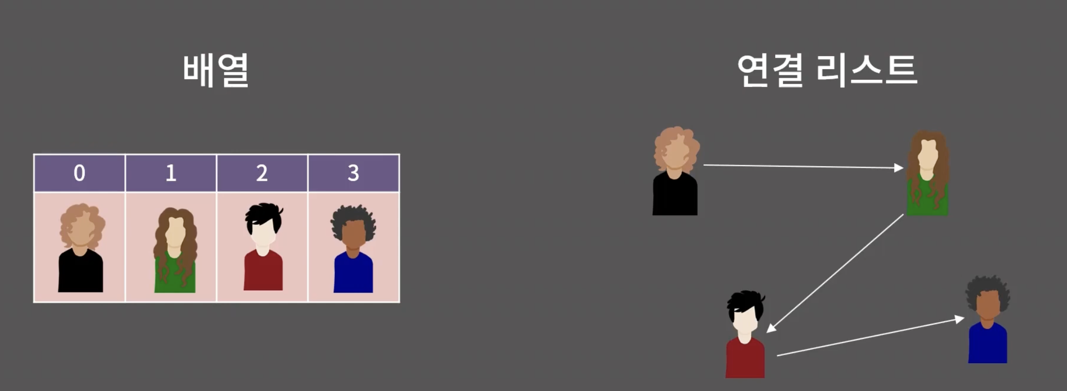 연결리스트로 구성되어 있다면 녹색 사람만 외우면, 나머지 순서를 다 알 수 있다.