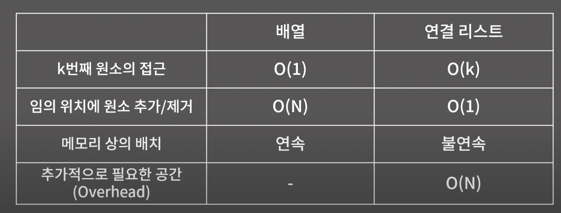 - 임의의 위치에 원소를 추가/ 제거하기 위해서는 O(1)이 필요하다.