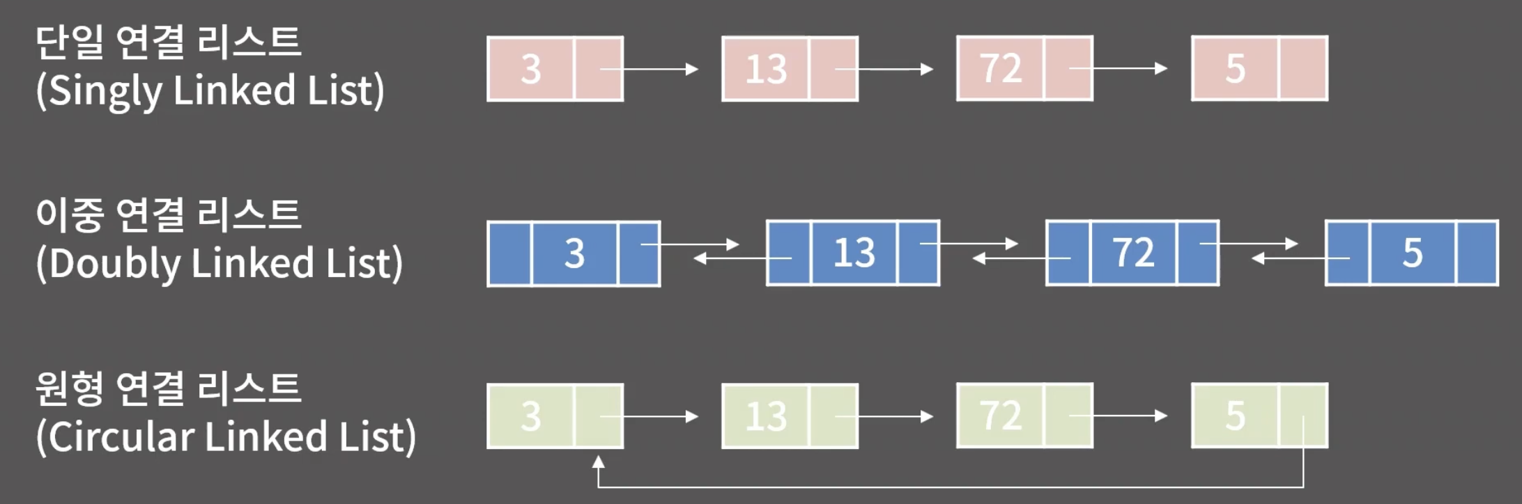 원소를 저장할 때 그 다음 원소가 있는 위치를 함께 저장하는 것.