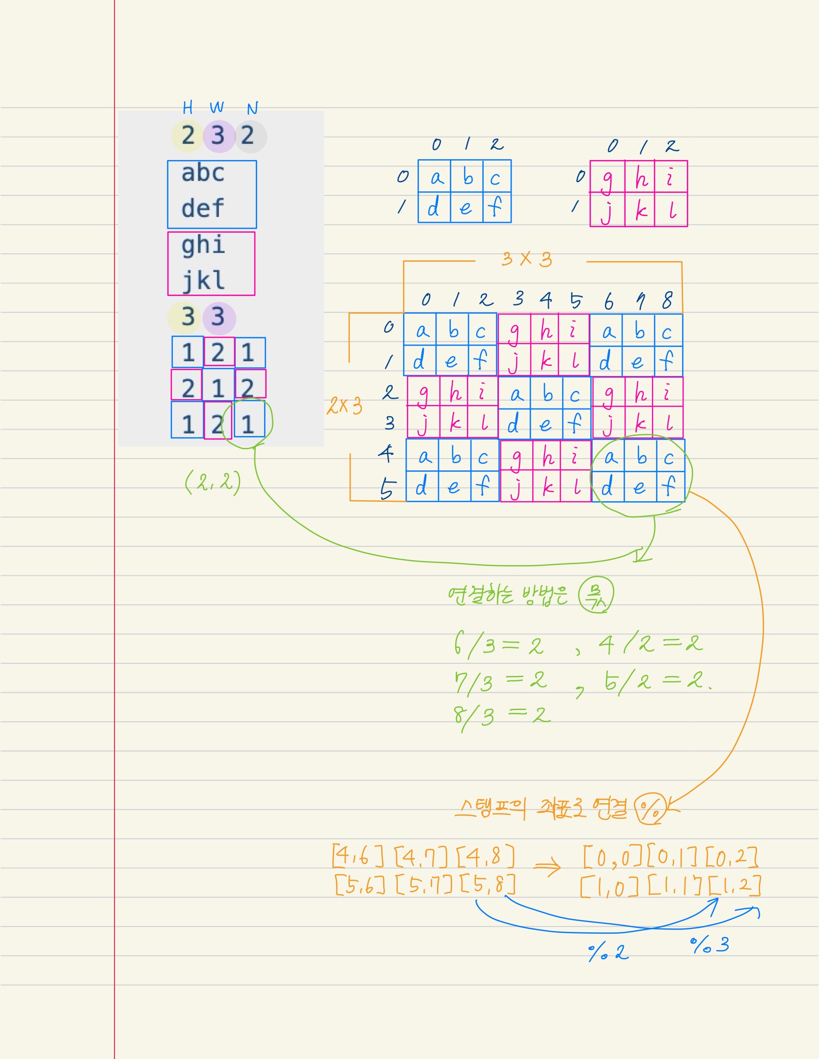 엄청난 알고리즘적 사고가 아닌 나머지와 몫을 적절히 다뤄 좌표끼리 매핑할 수 있느냐인 문제!