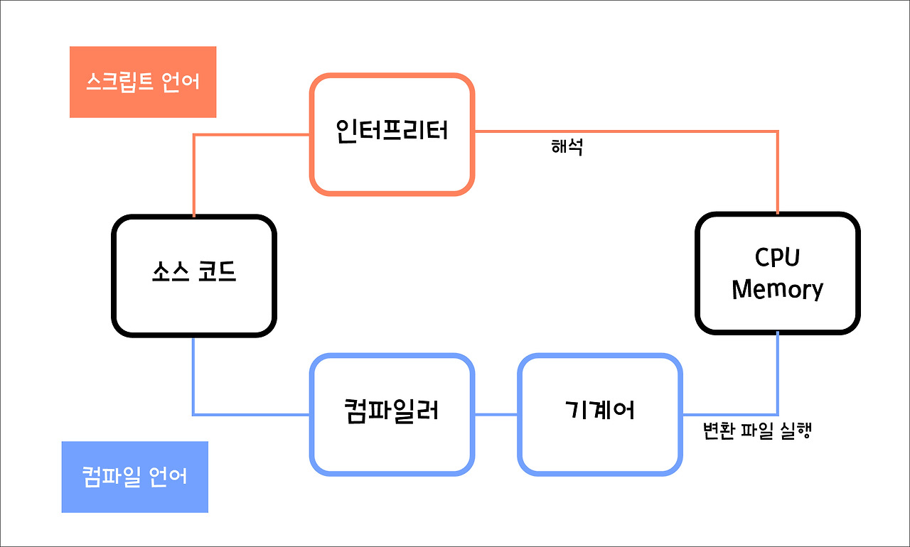 프로그래밍의 작동 방식에 따라 컴파일 언어, 인터프리터 언어 두가지로 구분할 수 있다.