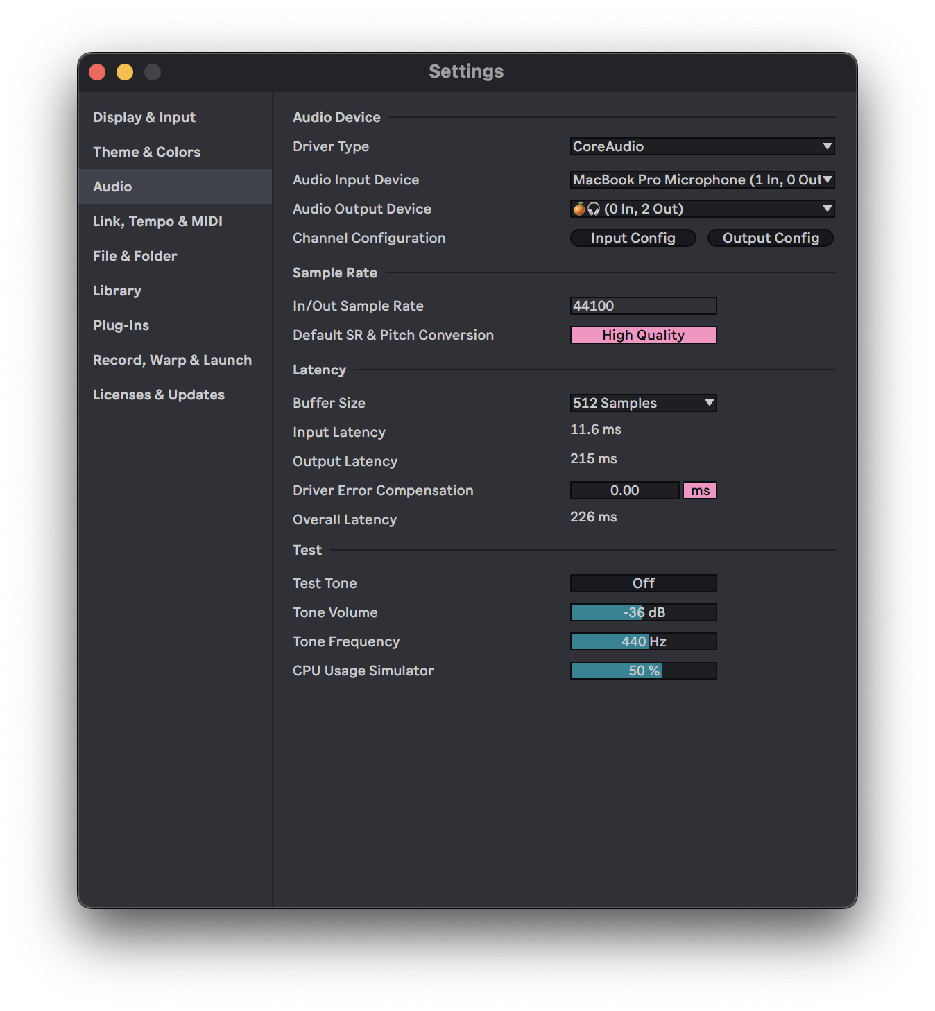- Audio - Latency - Buffer Size