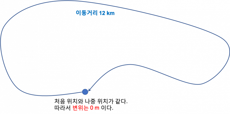 | 단위 시간 당 이동한 거리(distance) | 단위 시간 당 총 변위(출발점과의 거리와 방향) 변위(displacement) = 출발점과 도착점의 직선거리와 그 방향 |