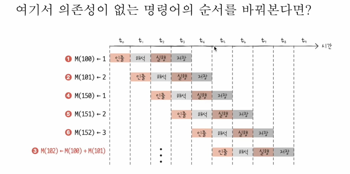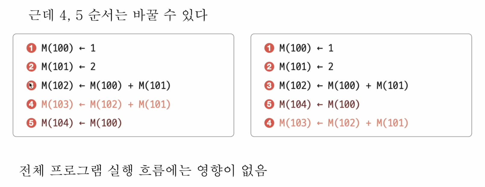 비 순차적 명령어처리(OOOE)를 지원하는 CPU의 경우 알아서 계산해서 처리해준다.