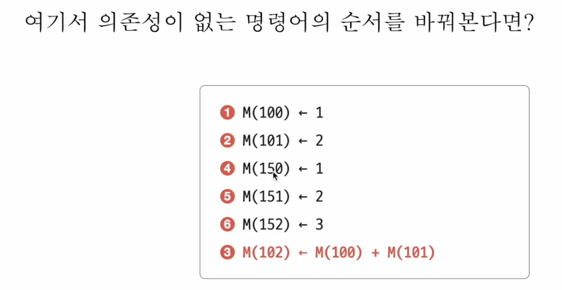 의존성이 없는 명령어의 순서를 바꾸는 것만으로 파이프라인의 중단을 멈출 수 있다.
