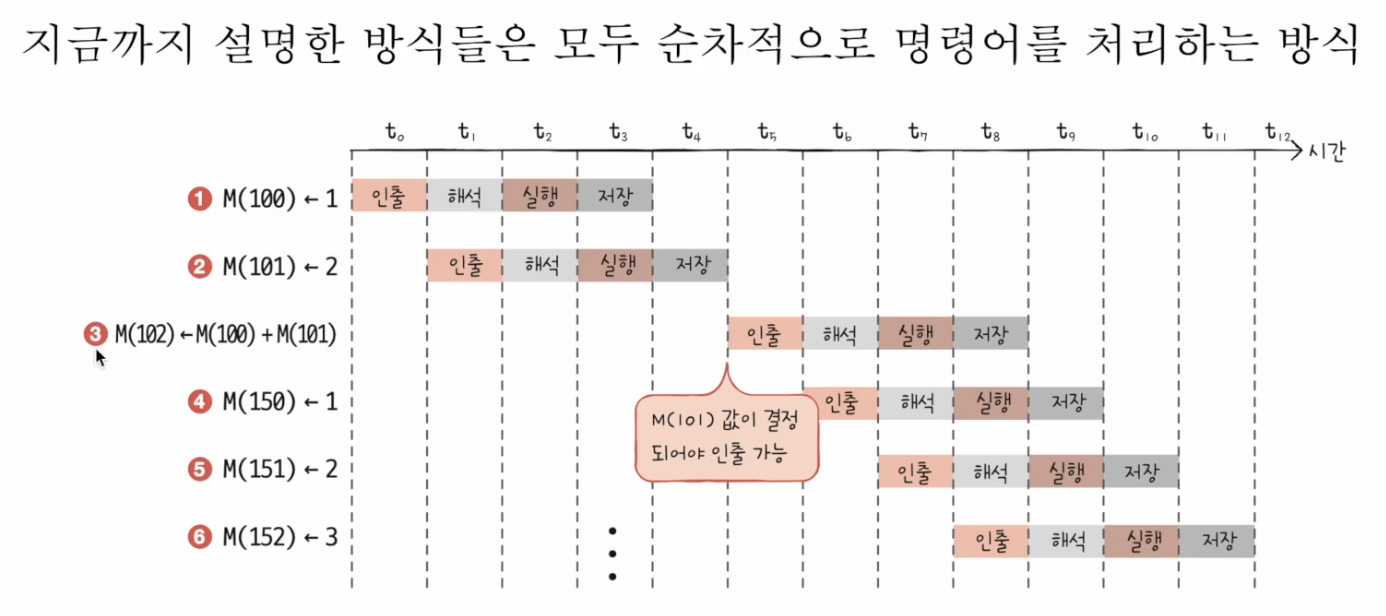 | 이전 명령어를 끝까지 실행해야만 비로소 실행할 수 있는 경우 | |