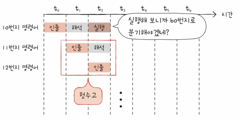 ![]() ex) 순차적 실행이 아닌 Jump 60 분기 예측(branch prediction): 미리 예측하는 것도 있긴 함. |