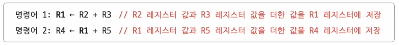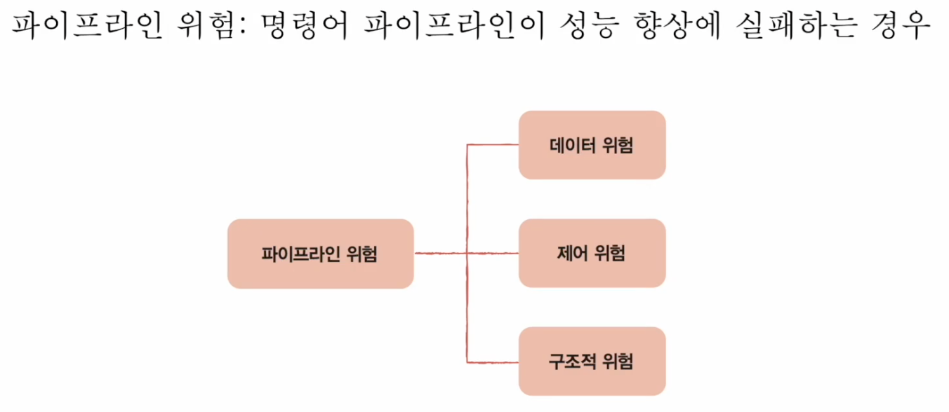 명령어 간의 의존성에 의해 야기 모든 명령어를 동시에 처리할 수는 없다 |