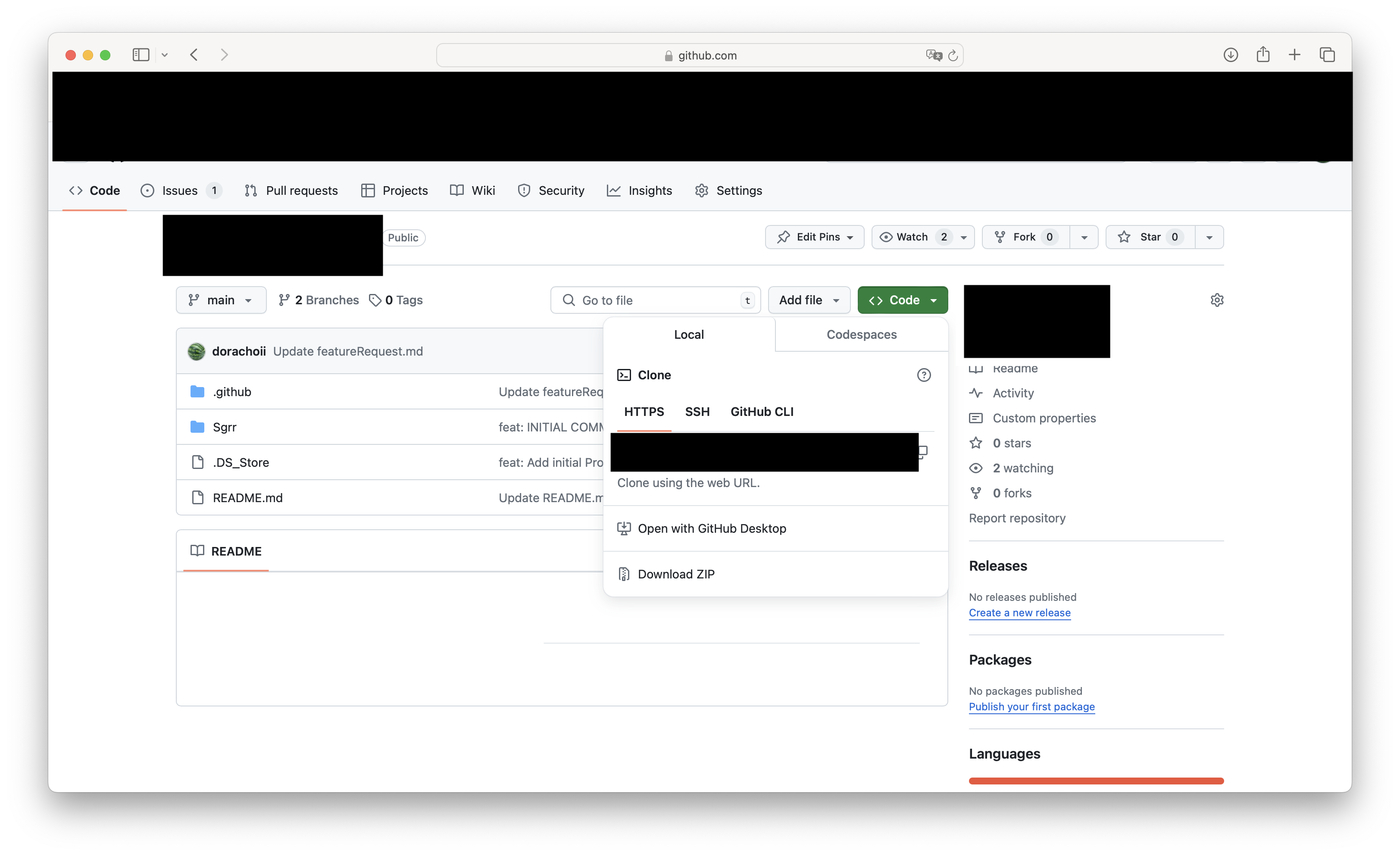 - pull request : 푸시한 브랜치는 풀 리쿼스트(pull request)를 통해 병합해야 원격 저장소에 반영된다.